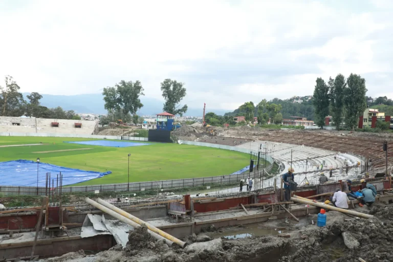 निर्माण कम्पनीले एक महिनामा काम सक्ने प्रतिवद्धता जनाएको कंठले जानकारी दिए । उनका अनुसार चार हजार कुर्सी जडान भइसकेका छन् भने छ वटा फ्लडलाइटमध्ये तीन वटा पोल आइसकेका न्छ । प्यारापिटतर्फ वित्तीय प्रगति ६३ प्रतिशत र भौतिक प्रगति ७७ प्रतिशत भएको छ । फ्लडलाइट जडानतर्फ २९ प्रतिशत वित्तीय र ४५ प्रतिशत भौतिक प्रगति भएको कंठले जानकारी दिए ।