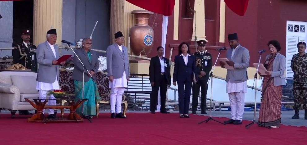 काठमाडौं । नवनियुक्त दुई मन्त्रीले शपथ ग्रहण गरेका छन् । राष्ट्रपति निवास शितलनिवासमा आयोजित विशेष समारोहमा राष्ट्रपति रामचन्द्र पौडेलले शपथ ग्रहण गराएका हुन् ।