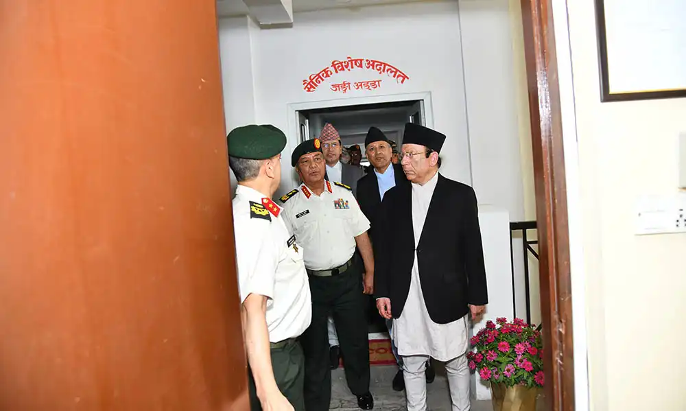 काठमाडौं। प्रधानन्यायाधीश प्रकाशमान सिंह राउतले सर्वोच्च अदालतबाट न्यायिक निकायहरुको नियमित निरीक्षणको सिलसिलामा आज सैनिक विशेष अदालतको निरीक्षण भ्रमण गरेका छन्।