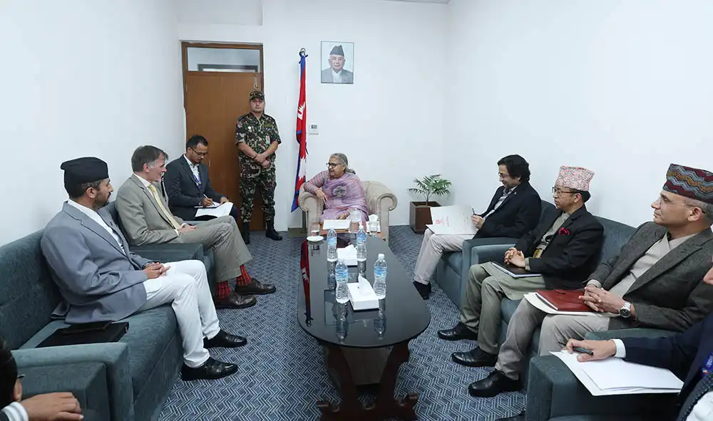 काठमाडौं । प्रधानमन्त्री सुशीला कार्कीसँग नेपालका लागि जर्मनीका राजदूत उडो भोल्जले शिष्टाचार भेट गरेकी छन्।