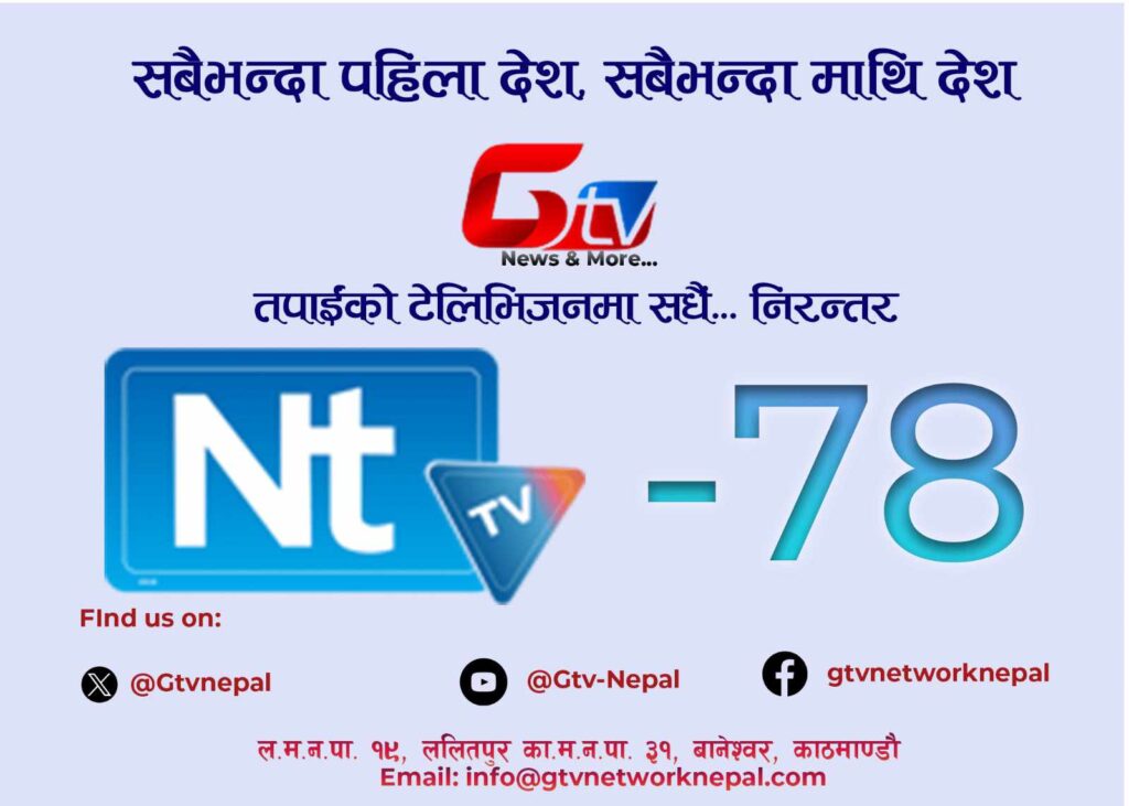 एनटि टिभीको च्यानल नम्वर ७८ मा जिटिभी प्रत्यक्ष प्रसारण Share on FacebookPost on X Related Galleries जिटिभी लाईभ हेर्न Net TV केवलमा च्यानल नम्वर १८२ Jun 17, 2025 जिटिभी लाईभ हेर्न स्काई केवलमा च्यानल नम्वर १६७ Jun 17, 2025 स्टुडियोमै बम प्रहार Jun 17, 2025